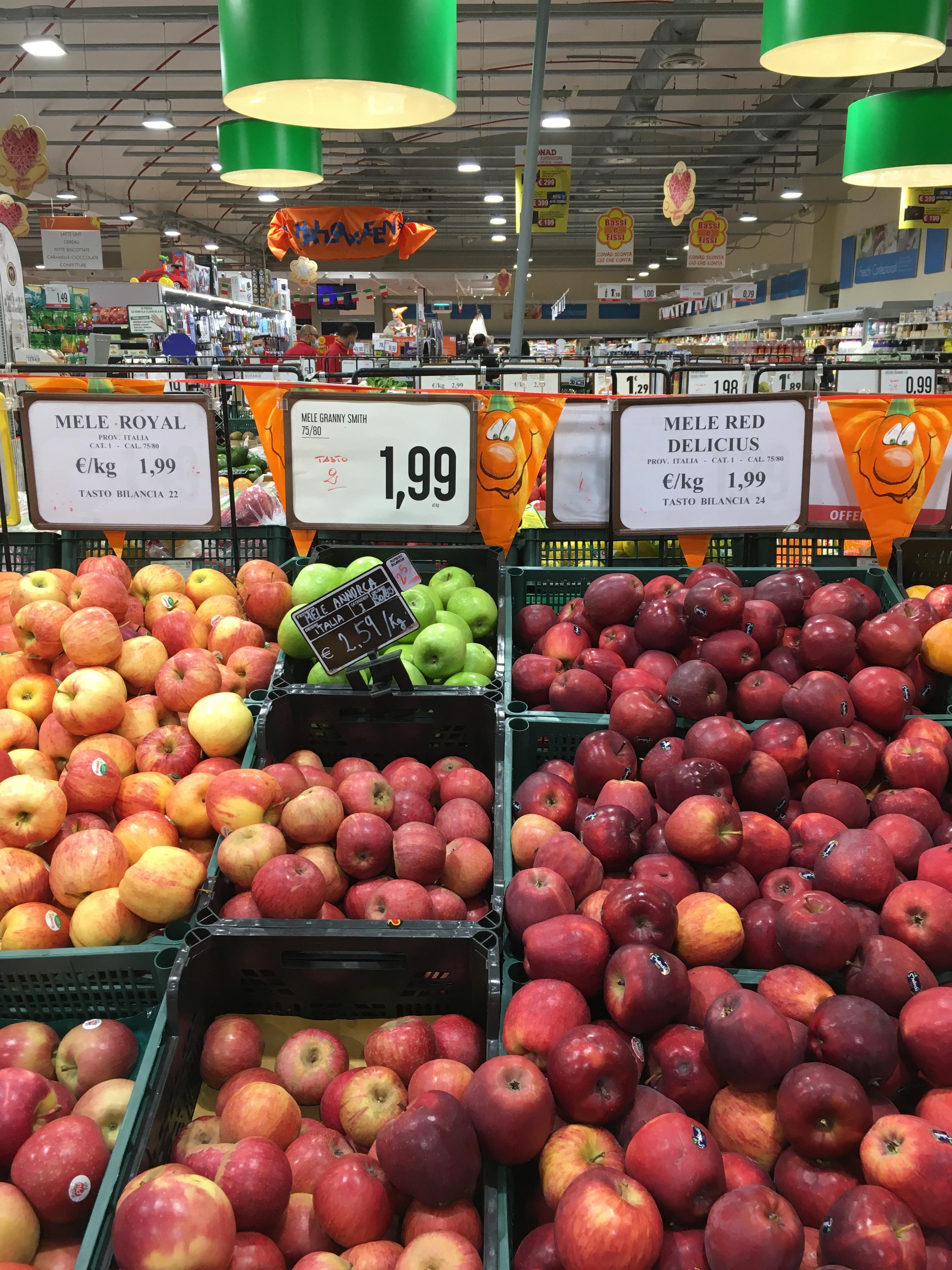 (이탈리아의 사과는 너무 모형같이 붉고 이쁜 사과들이 많다. 맛도 새콤달콤하니 맛이 좋다.)